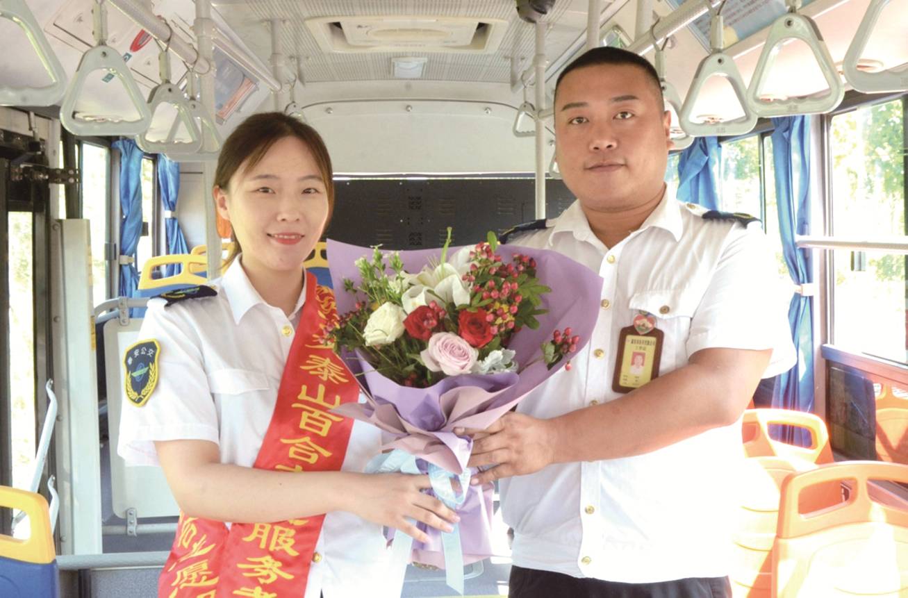 7月20日,公司“泰山百合”志愿者為四分公司17路駕駛員趙剛送上百合花一束,表彰他拾金不昧,助人為樂的精神。