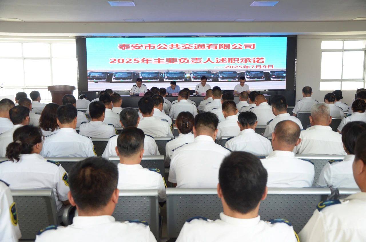 7月9日,泰安公交召開主要負(fù)責(zé)人述職承諾大會。市交通運(yùn)輸局道路運(yùn)輸管理服務(wù)中心公交科科長田繼軍出席本次會議。泰安公交領(lǐng)導(dǎo)班子成員、各單位主要負(fù)責(zé)人、安全生產(chǎn)負(fù)責(zé)人及職工代表共計80余人參加。