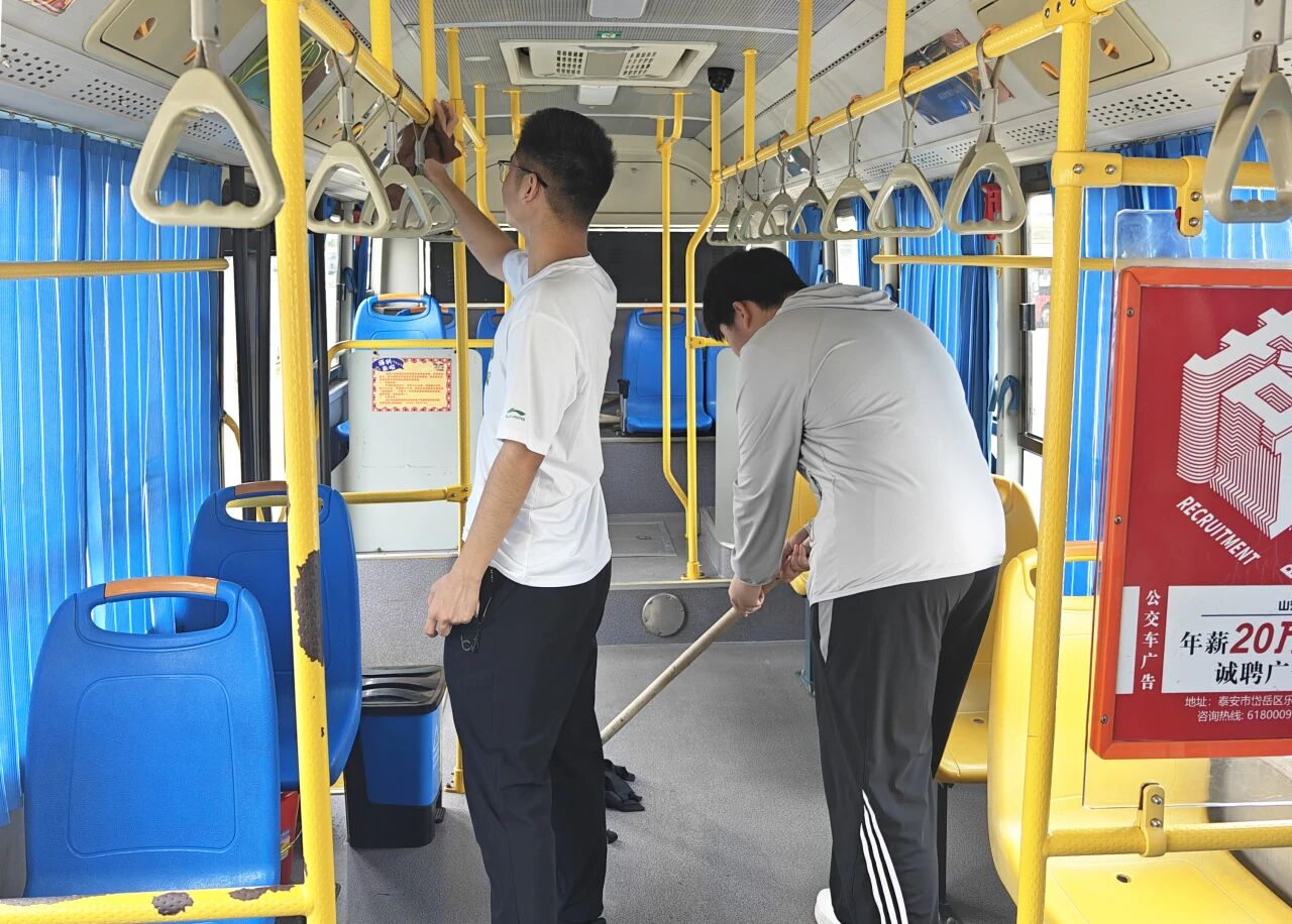 為讓同學(xué)們近距離感受駕駛員的日常工作,大家還參與了公交車衛(wèi)生清掃志愿服務(wù)。清掃過(guò)程中,同學(xué)們發(fā)現(xiàn)公交車存在不少衛(wèi)生死角,清潔起來(lái)頗為不易,由此真切體會(huì)到駕駛員工作的辛勞。有同學(xué)感慨道:“駕駛員既要專注駕駛,又要維持車輛整潔,實(shí)在不容易,以后乘車肯定會(huì)愛護(hù)車內(nèi)環(huán)境。”